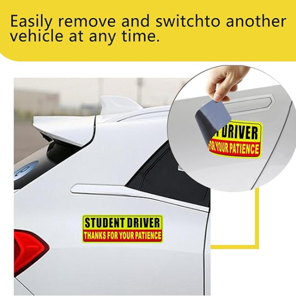 - REFLECTIVE MAGNET: reflective materials are important for ensuring that the sticker is visible to other drivers, even in the dark. This is crucial for safety, as it allows other drivers to be aware of the student driver’s presence and adjust their driving accordingly